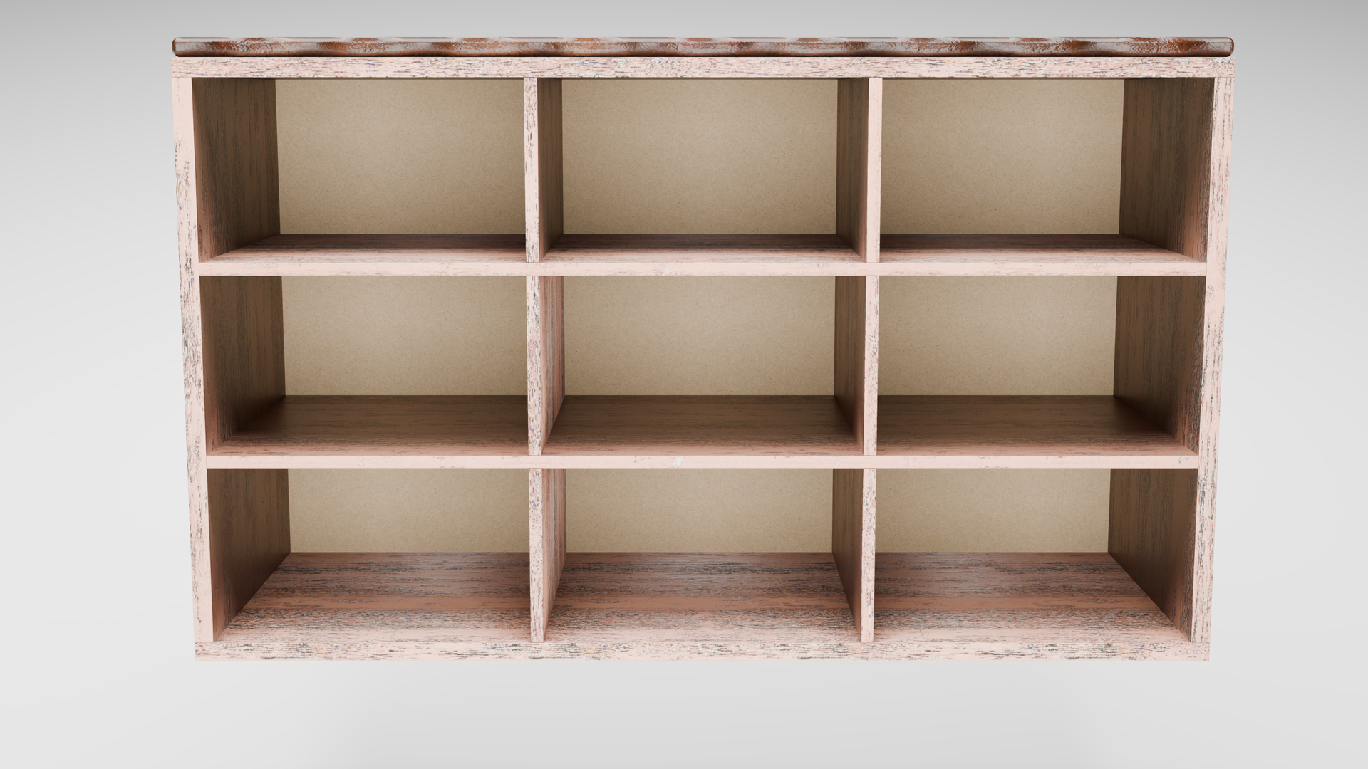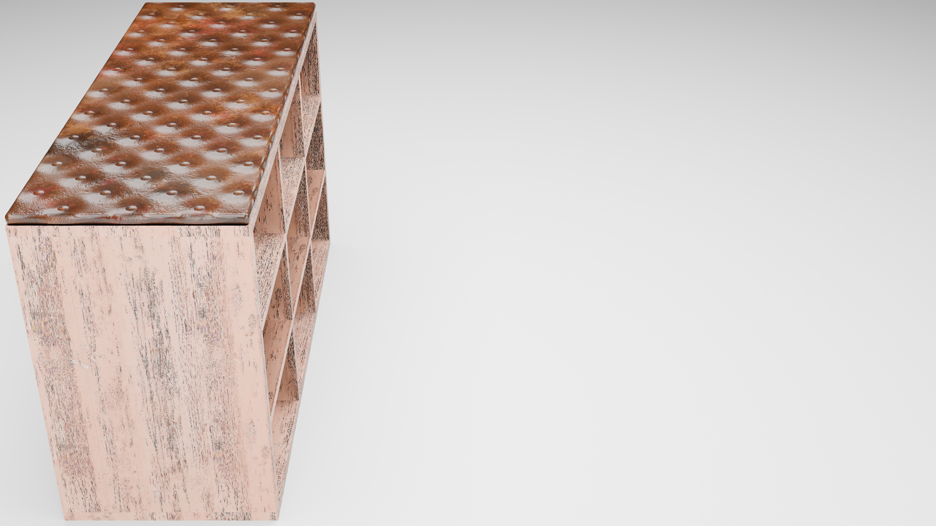 Wardrobe Shoe Shelf - 1 - 13 is a vintage piece of furniture made of old wood with a padded seat cushion of quilted brown leather. It offers practical storage space for shoes with 9 drawers. Optimized for Blender, Unity 6, Unreal Engine 5.6. For game developers.