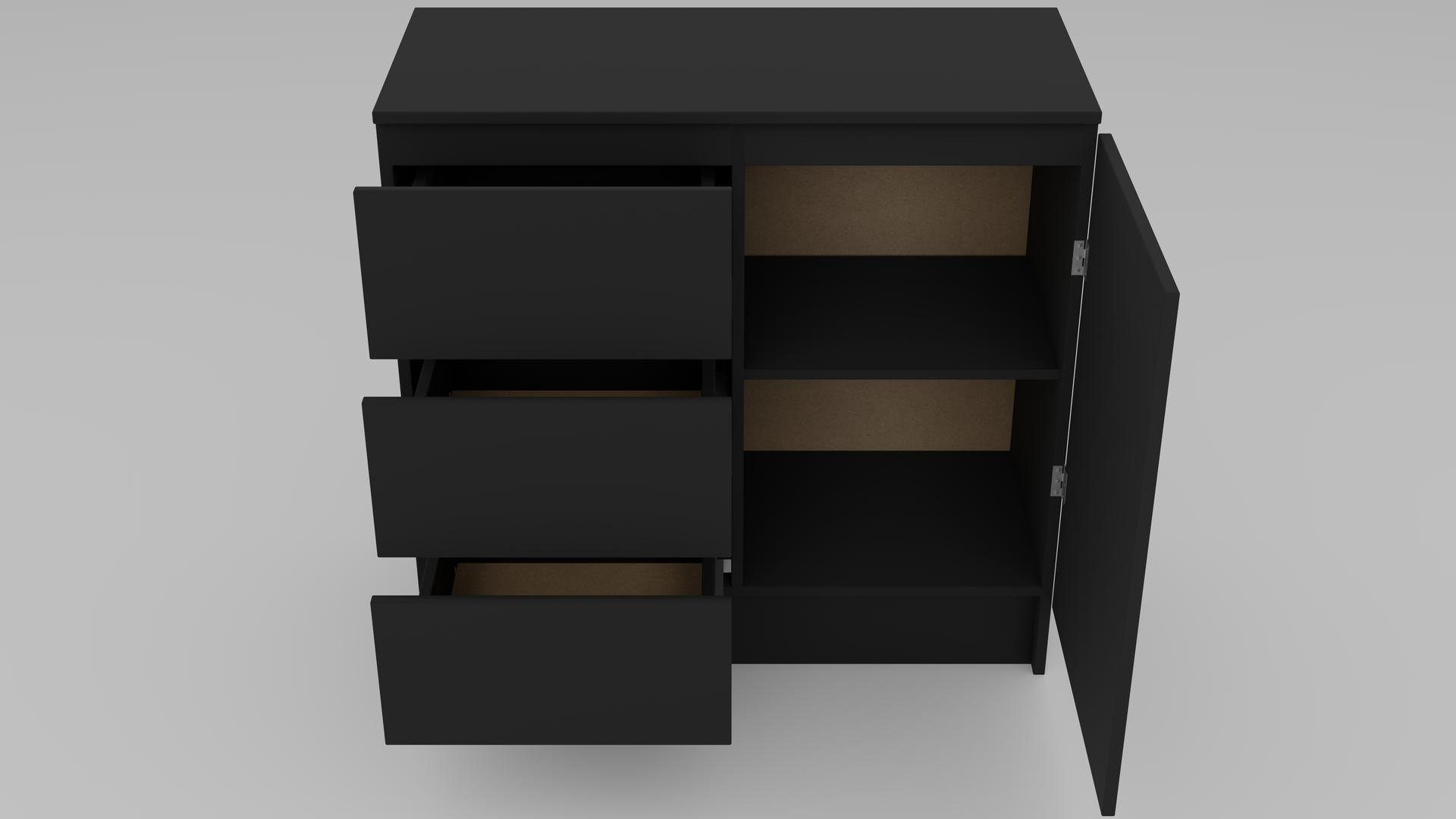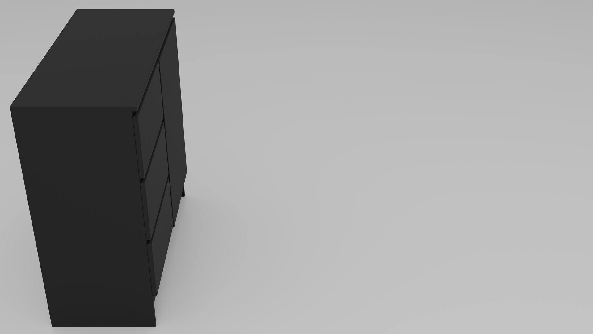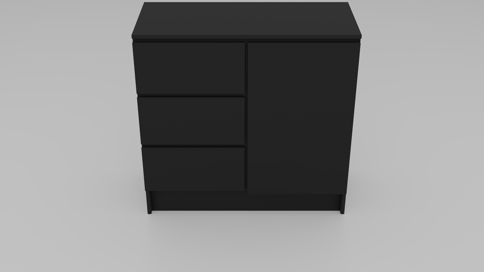 Diese stilvolle Kommode überzeugt durch ihr modernes, minimalistisches Design in edlem Schwarz Matt. Sie ist mit drei großzügigen Schubladen sowie einer praktischen Tür ausgestattet und bietet dadurch vielseitigen Stauraum für Kleidung, Alltagsgegenstände oder Accessoires. Die feine matte Oberfläche sorgt für ein elegantes Erscheinungsbild und fügt sich harmonisch in verschiedene Wohnstile ein – von Industrial bis Modern Classic. Für zusätzliche Detailtreue wurde besonderes Augenmerk auf realistische Bauelemente gelegt: Sichtbare Scharniere an der Tür sowie fein modellierte Schrauben unterstreichen die hochwertige Verarbeitung und verleihen dem Modell Authentizität und Tiefe. Die klaren Kanten, dezenten Fugen und die realistischen Proportionen machen die Kommode zu einem idealen Objekt für Innenraumvisualisierungen, Produktpräsentationen oder Spieleumgebungen. Die Kombination aus Funktionalität und ästhetischer Zurückhaltung macht dieses 3D-Modell zu einer perfekten Ergänzung für anspruchsvolle Designprojekte.