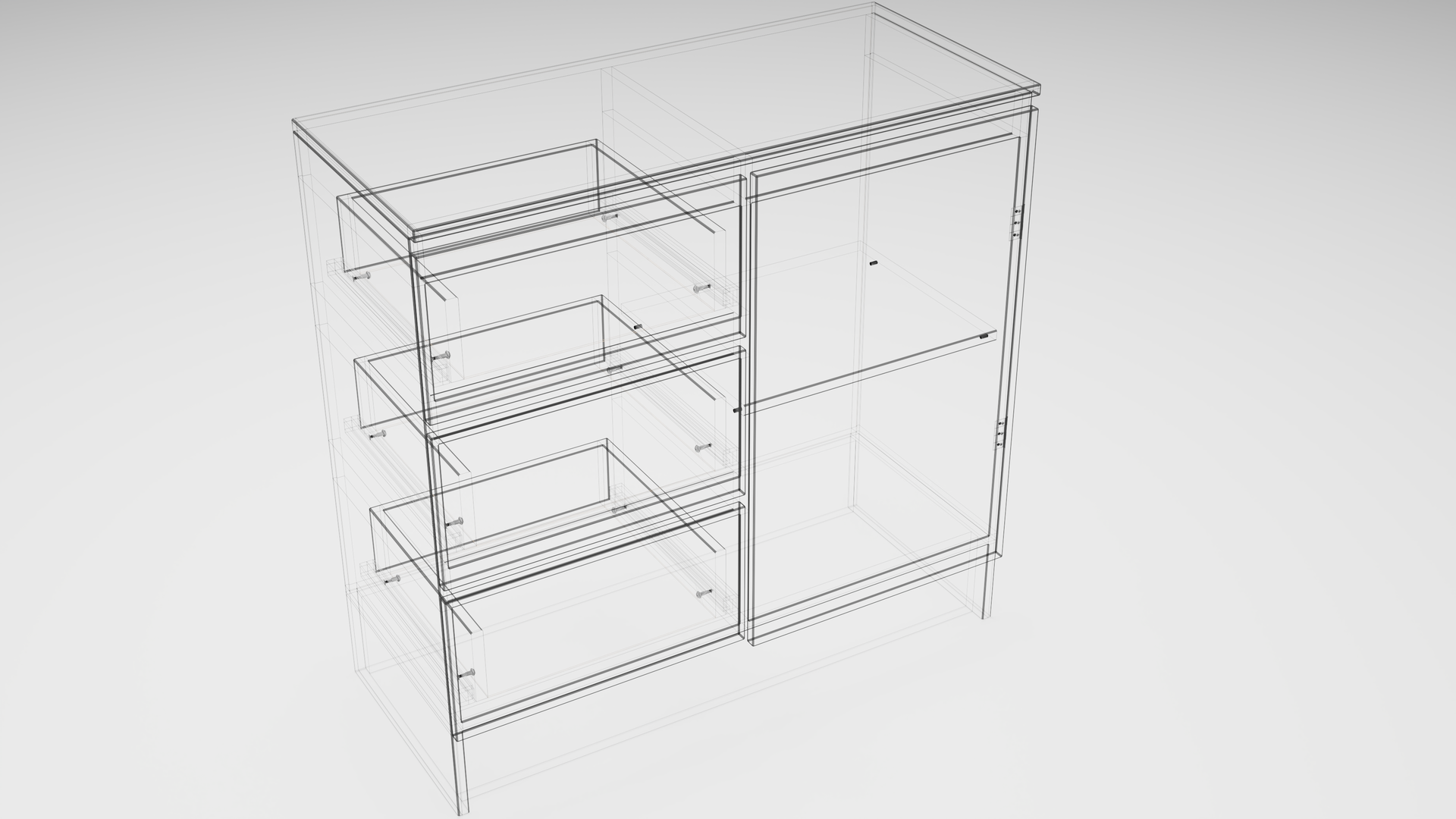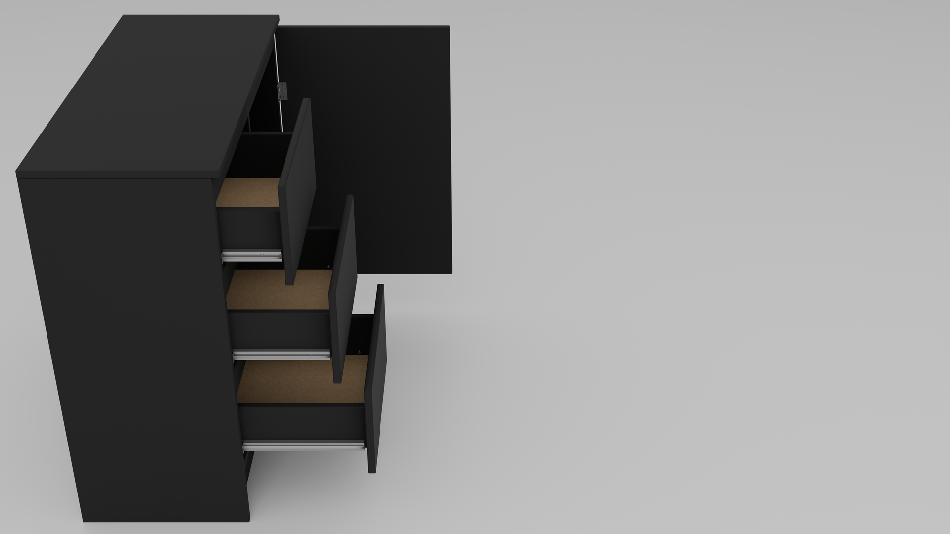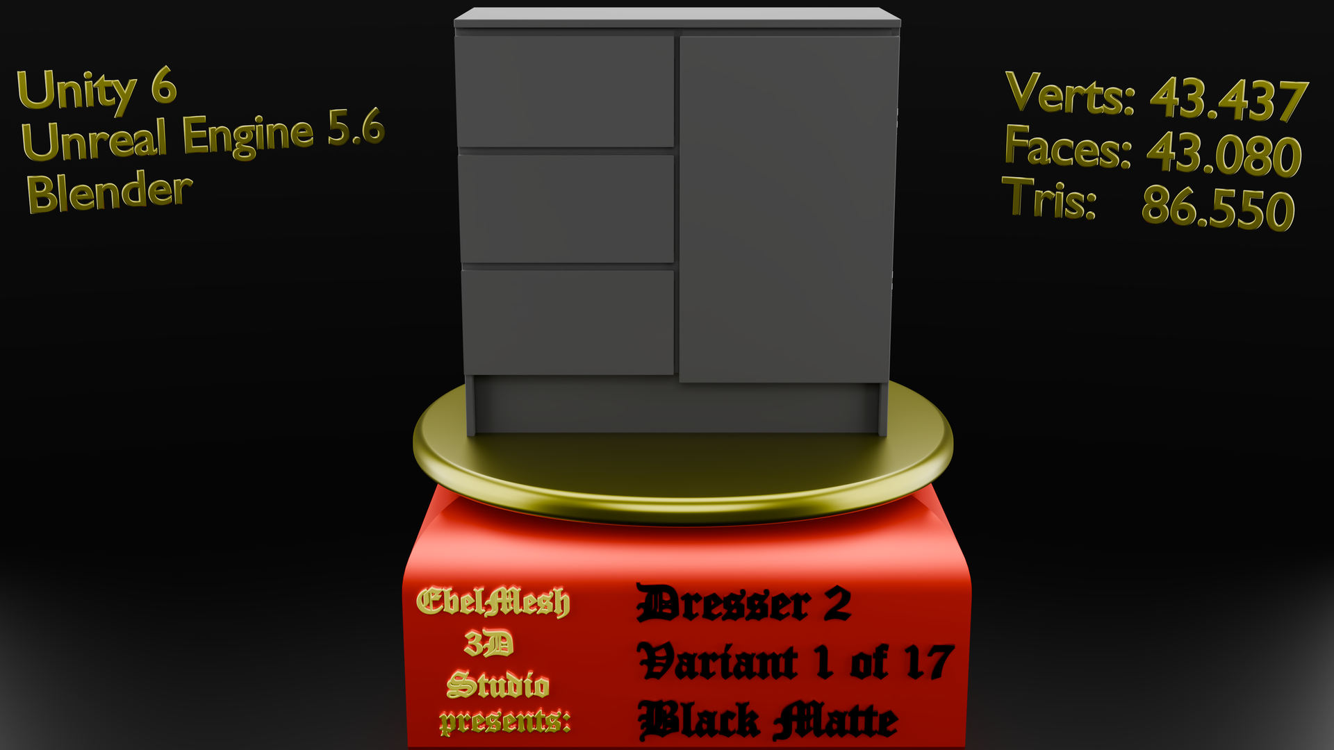 Diese stilvolle Kommode überzeugt durch ihr modernes, minimalistisches Design in edlem Schwarz Matt. Sie ist mit drei großzügigen Schubladen sowie einer praktischen Tür ausgestattet und bietet dadurch vielseitigen Stauraum für Kleidung, Alltagsgegenstände oder Accessoires. Die feine matte Oberfläche sorgt für ein elegantes Erscheinungsbild und fügt sich harmonisch in verschiedene Wohnstile ein – von Industrial bis Modern Classic. Für zusätzliche Detailtreue wurde besonderes Augenmerk auf realistische Bauelemente gelegt: Sichtbare Scharniere an der Tür sowie fein modellierte Schrauben unterstreichen die hochwertige Verarbeitung und verleihen dem Modell Authentizität und Tiefe. Die klaren Kanten, dezenten Fugen und die realistischen Proportionen machen die Kommode zu einem idealen Objekt für Innenraumvisualisierungen, Produktpräsentationen oder Spieleumgebungen. Die Kombination aus Funktionalität und ästhetischer Zurückhaltung macht dieses 3D-Modell zu einer perfekten Ergänzung für anspruchsvolle Designprojekte.