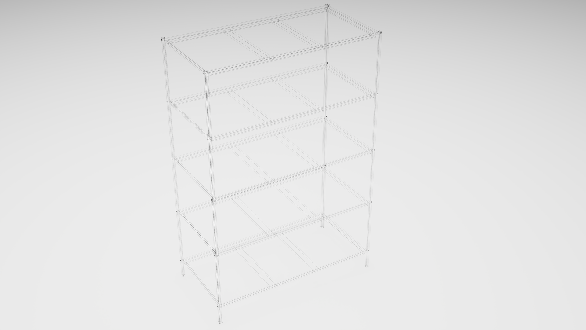 Schwerlastregal – Variante 1 von 14 – Metall – Schwarz, ist ein detailgetreues 3D-Modell, abgeleitet von den Originalmaßen (Maßstab 1:1, Einheit: cm).